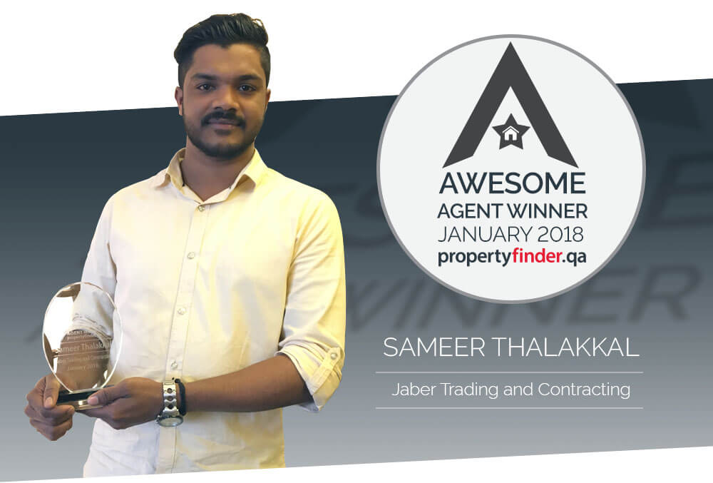 Read moreMeet our Awesome Agent for January – Sameer Thalakkal, form Jaber Trading and ContractingCongratulations to Sameer for being chosen as January’s Awesome Agent! Sameer started 2018 with great success, finalizing over 16 …